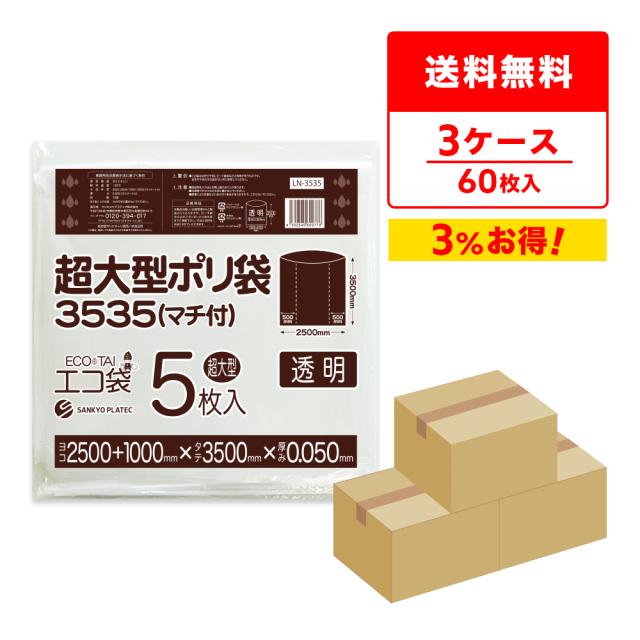 【まとめて3ケース】LN-3535-3 超大型ポリ袋 (マチ付き) 3500x3500 0.050mm厚 透明 5枚x4冊x3箱 / ゴミ袋 ごみ袋 送料無料