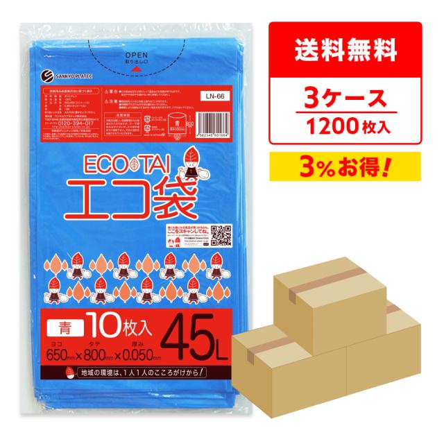 【まとめて3ケース】LN-66-3 ポリ袋 45リットル 0.050mm厚 黒 10枚x40冊x3箱 / ゴミ袋 ごみ袋 送料無料