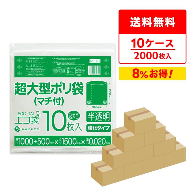 【まとめて10ケース】 KN-1515-10 超大型ポリ袋 (マチ付き) 1500x1500 0.020mm厚 半透明 10枚x20冊x10箱 / ゴミ袋 ごみ袋 送料無料