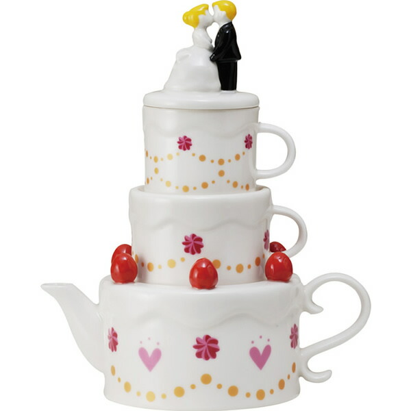 ハッピーウエディング ティーフォーツー (2人用ティーセット/ポット・カップ・茶こし) おもしろ食器 キッチン用品