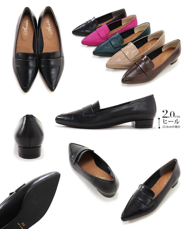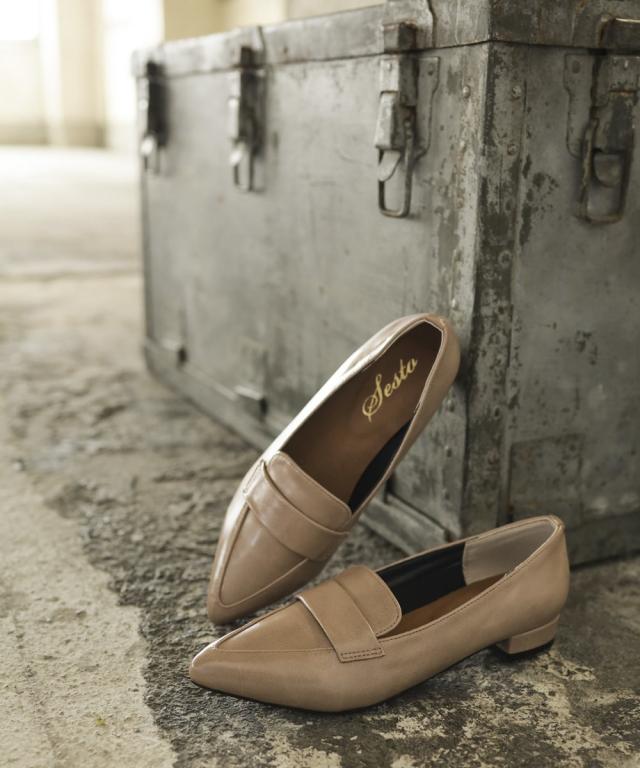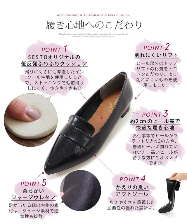 セスト(SESTO)/ポインテッドトゥローヒールローファーパンプス