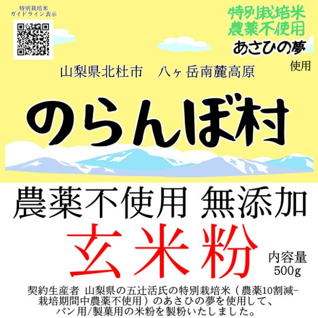 のらんぼ村 農薬不使用 (特別栽培米) 無添加 パン/製菓・調理用 玄米粉 500g