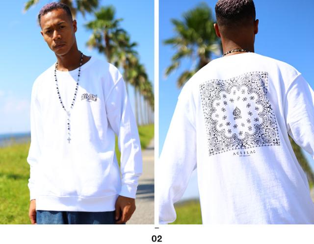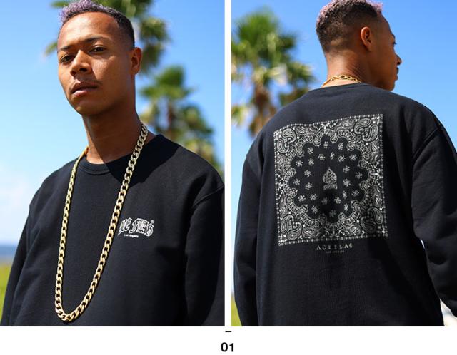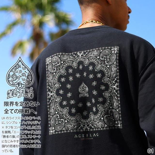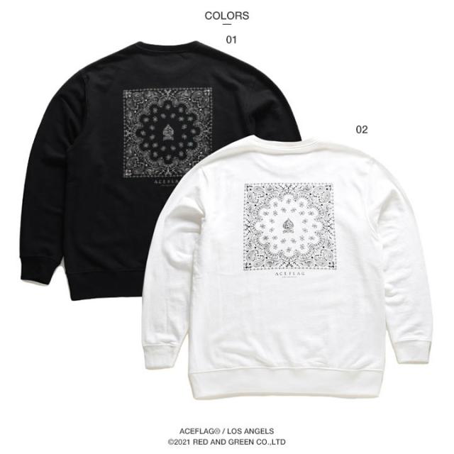 【67%OFF】ACEFLAG ストリート系 トレーナー 長袖 スウェット 裏パイル メンズ レディース 黒 白 大きいサイズ ビッグシルエット エースフラッグ ペイズリー柄 バンダナ柄 スペード ペイズリー b系 ヒップホップ ファッション 服 AF-TL-SW-017