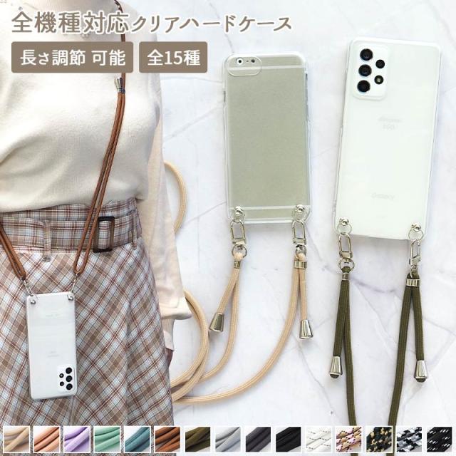全機種対応 スマホケース スマホカバー iPhone ケース カバー クリア 透明 ショルダーケース ストラップ付き 肩 ネック 首 落下防止 携帯 紐 ひも ロープ くすみ 韓国
