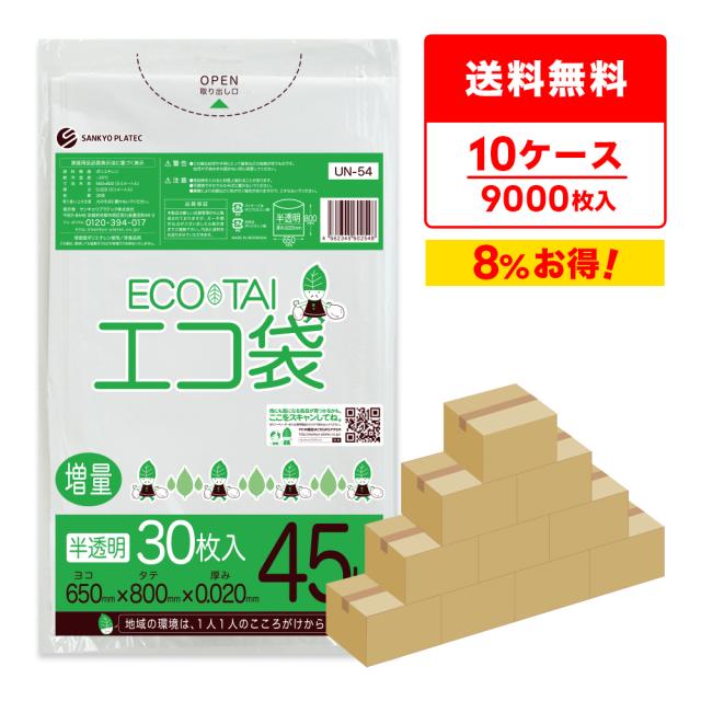【まとめて10ケース】UN-54-10 ポリ袋 45リットル 0.020mm厚 半透明 30枚x30冊x10箱 / ゴミ袋 ごみ袋 送料無料