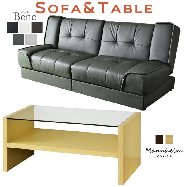 ソファ 2人掛け ソファベッド 収納 引き出し収納 リクライニング ローソファ テーブル ガラステーブル センターテーブル ローテーブル 北欧 ベーネ マンハイム