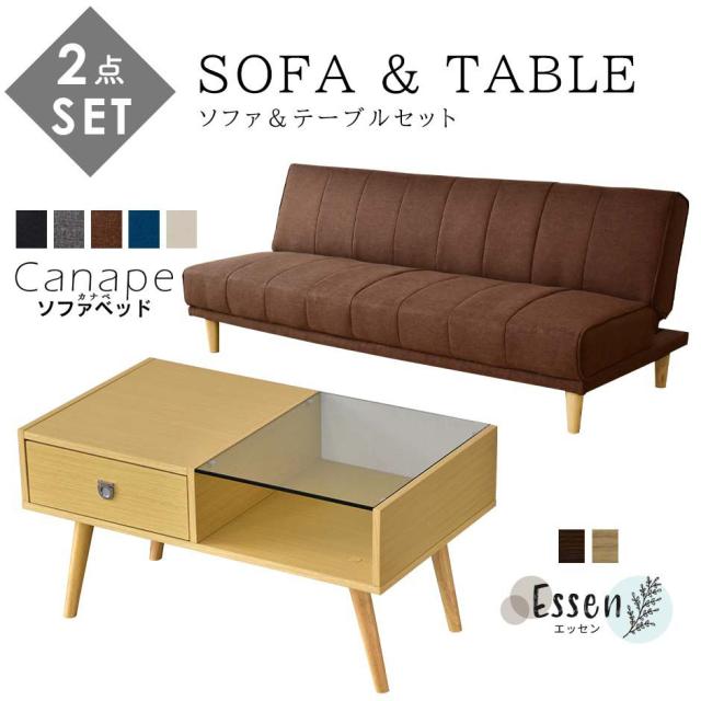 ソファセット ソファベッド ローテーブル リクライニングソファ 2人掛け 3人掛け リビングテーブル ガラステーブル ガラス天板 棚付き 収納 カナペ エッセン