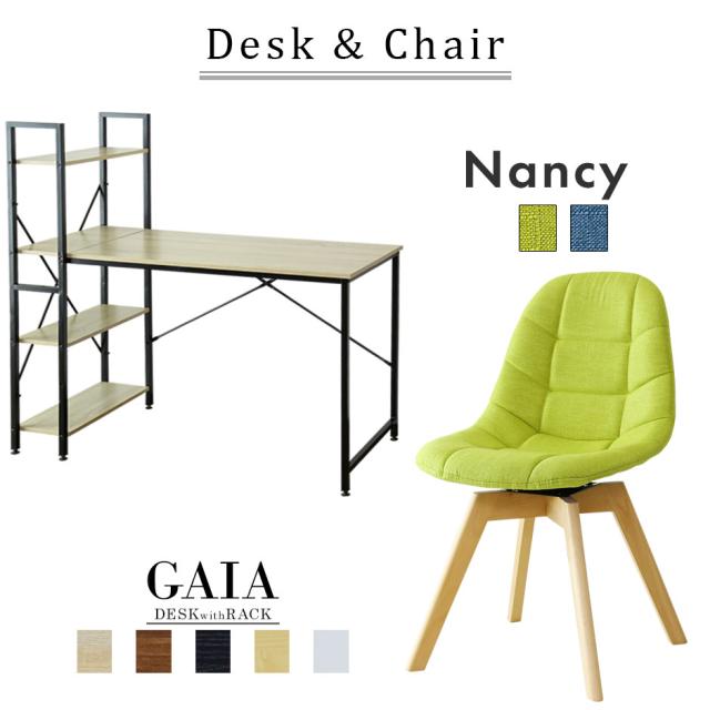 パソコンデスク オフィスチェア セット デスク チェア 在宅 テレワーク ラック 書棚 PC おしゃれ デザイナーズ コンパクト 北欧 ガイア ナンシー