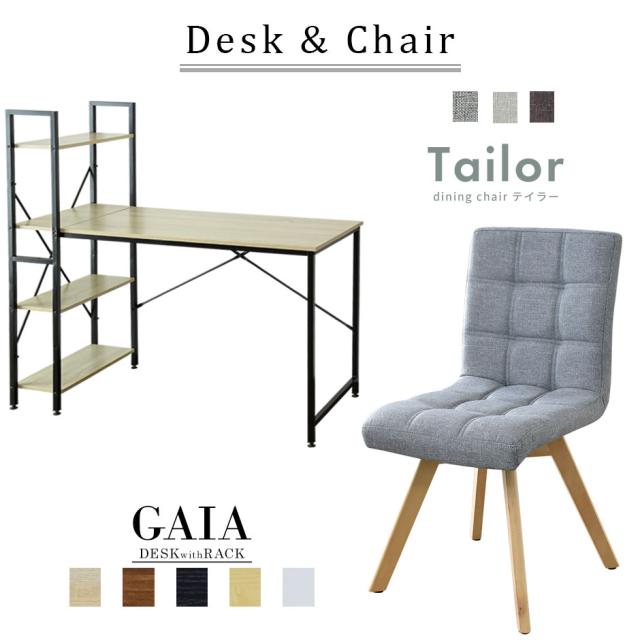 パソコンデスク オフィスチェア セット デスク チェア 在宅 テレワーク ラック 書棚 PC おしゃれ デザイナーズ コンパクト 北欧 ガイア テイラー