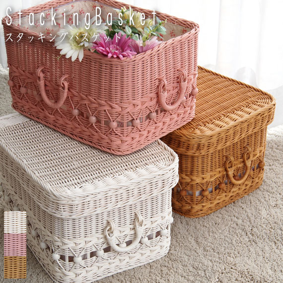 fiore シリーズ スタッキングバスケット (バスケット スタッキング 積み重ね ラタン 可愛い キュート ロマンティック ガーリー カントリー ナチュラル 天然素材 リゾート ホテル カフェ 爽やか おすすめ おしゃれ)