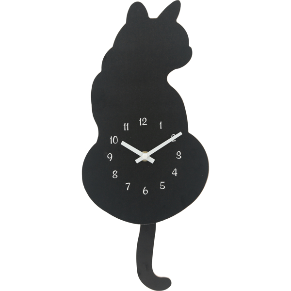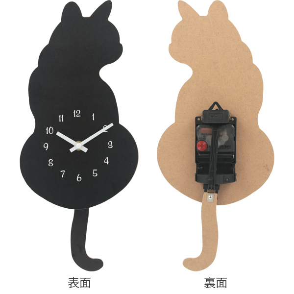 掛け時計 振り子時計 クロネコ 壁掛け 時計 アナログ 猫 掛け時計 おしゃれ( 壁掛け時計 とけい ウォールクロック クロック 雑貨 ねこ ネコ 動物 アニマル しっぽ シンプル リビング ダイニング 子ども部屋 おしゃれ )