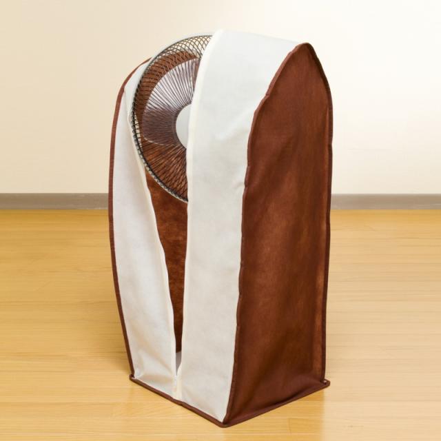 【商品名】扇風機保存カバー(ベージュ×ブラウン) 102-20