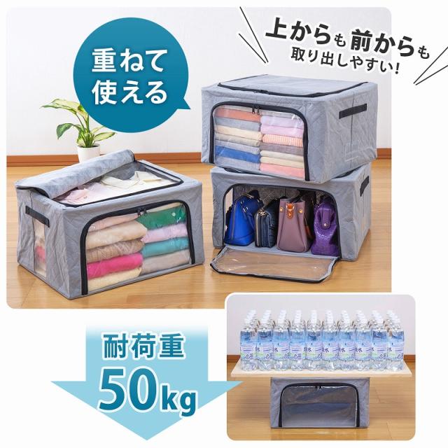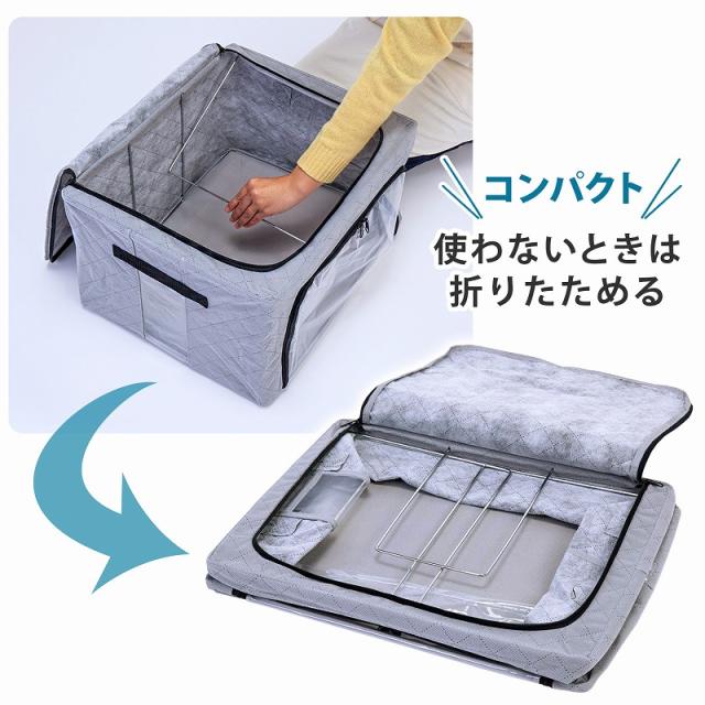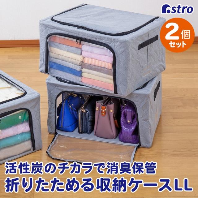 収納ボックス 2個組 活性炭消臭 透明窓付き スタッキング ワイヤー式 折りたたみ 収納ケース 衣装ケース アストロ 620-57