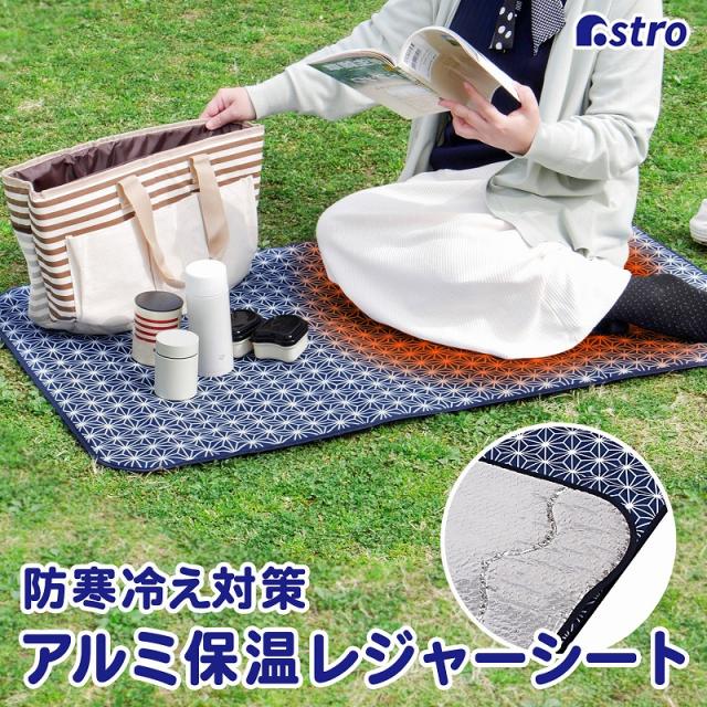 アストロ やわらか保温 レジャーシート シングルサイズ ネイビー 麻の葉柄 アルミシート サバイバルシート 822-41 大