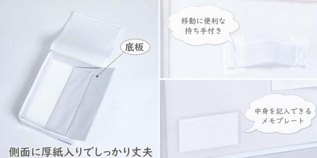 通気性の良い不織布を使用。不織布は湿気やニオイがこもりにくく、ホコリなどの汚れは防ぐ収納に適した素材です。
