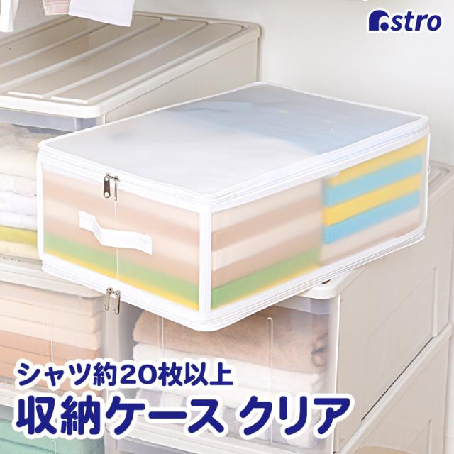 商品名:衣類収納クリアケース ホワイトカラー:ホワイトサイズ:約幅52×奥行35×高さ19.5cm材質:ポリプロピレン内容:1個生産国:中国【収納目安】●厚手セーター:約5~8枚●薄手シャツ:約20~25枚【特長】●オフシーズンの衣類をホコリなどからガードし、しっかり保管できる収納ケース。●シースルータイプのケースで、収納したまま中身が分かるので探す手間が省ける。●上下共ファスナーの組み立て式のケースなので、使わないときは折りたためてスリムに。●ダブルファスナーで開け閉めがラク。持ち手付きで取り出しや持ち運びの際もスムーズ。【ご注意】●本来の用途以外でのご使用はお控えください。【ASTRO CO., LTD】1970年創業、不織布収納日用品メーカーとして「アストロ」のオリジナル商品を販売しています。生地の開発から製造、流通、品質管理を自社管理。収納用品をメインに多彩な日用品を企画販売してまいりました。アストロは暮らしを楽しく便利にさせる商品をこれからも創造し続けます。established in 1970