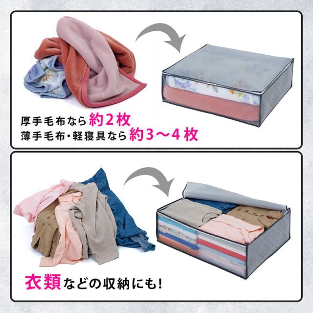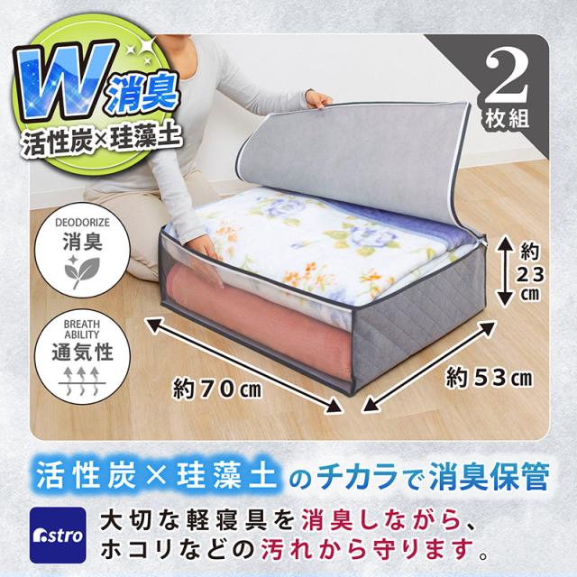 アストロ 収納ケース 毛布用 2枚組 グレー 不織布 活性炭 珪藻土 消臭 透明窓付き 615-13