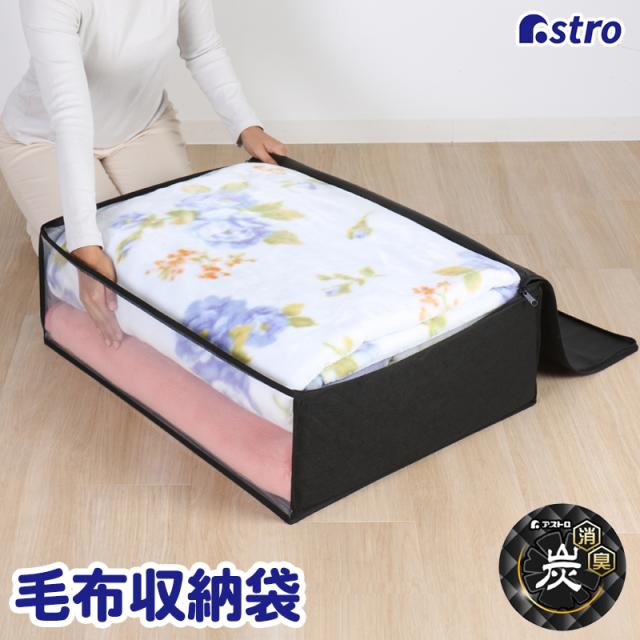 アストロ 寝具 収納袋 毛布・タオルケット・薄手の掛け布団用 黒 不織布 活性炭消臭 617-51