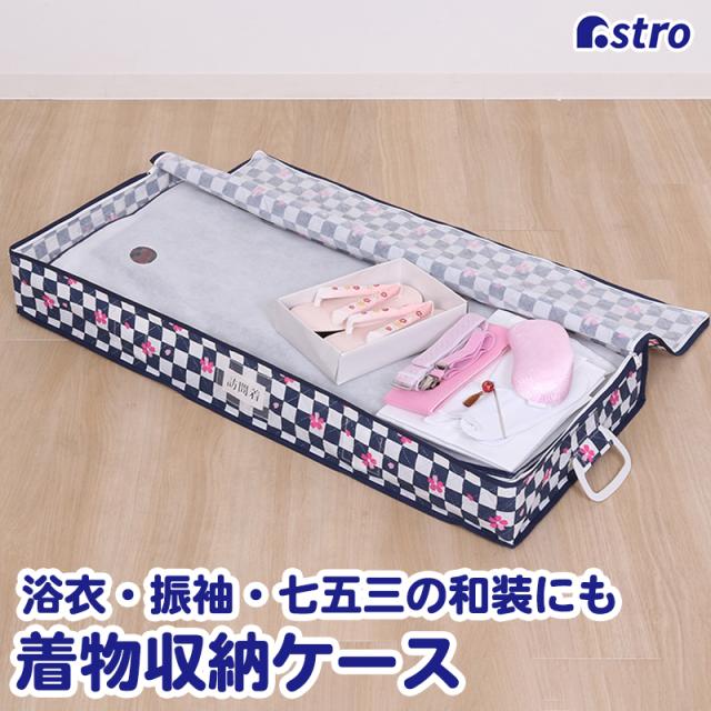 着物収納ケース 通気性の良い不織布 ホコリ除け 3〜4枚収納 市松模様×桜柄 着物 浴衣 収納袋 保存袋 防虫剤入れ アストロ 618-54