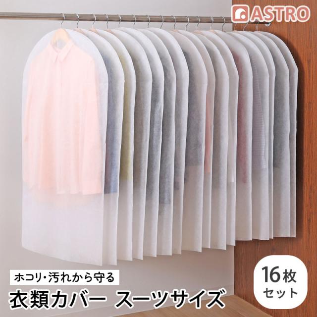 洋服カバー 不織布 16枚組 スーツサイズ 衣類カバー 衣装カバー ほこり除け 通気性良好 切って長さ調整できる アストロ 605-01