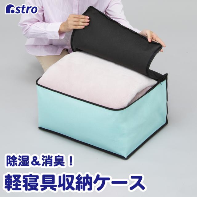 アストロ 収納ケース 毛布用 ウォーターブルー×ブラック 不織布 シリカゲル 吸湿 消臭 除湿 618-83