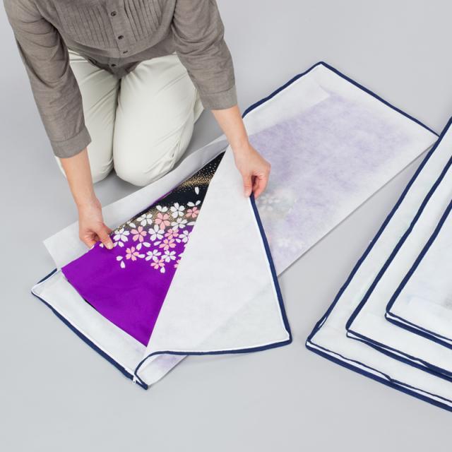 ●湿気やにおいのこもりにくい通気性の良い不織布製。大切な着物をホコリから守り保管できる。