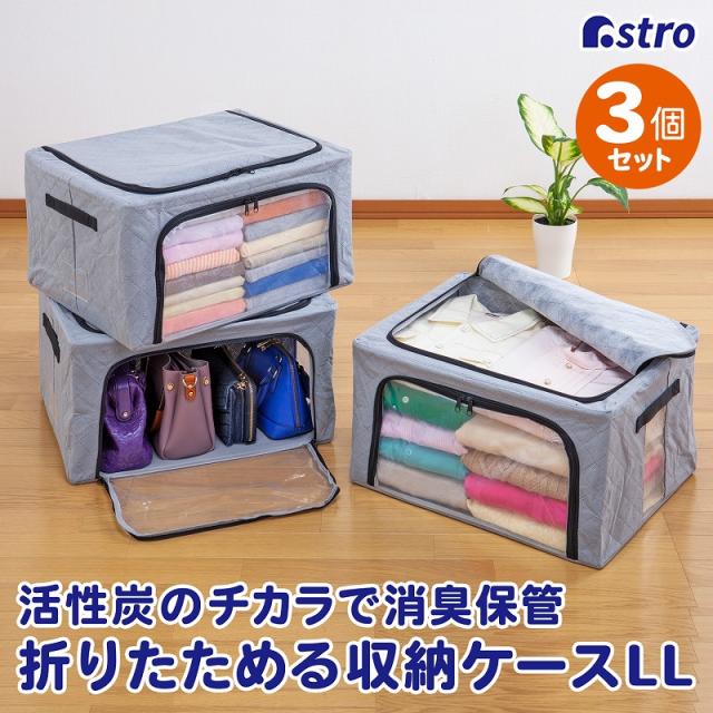 収納ボックス 窓付き 3個組 活性炭消臭 スタッキング ワイヤー式で畳んで収納 収納ケース 衣装ケース アストロ 620-37