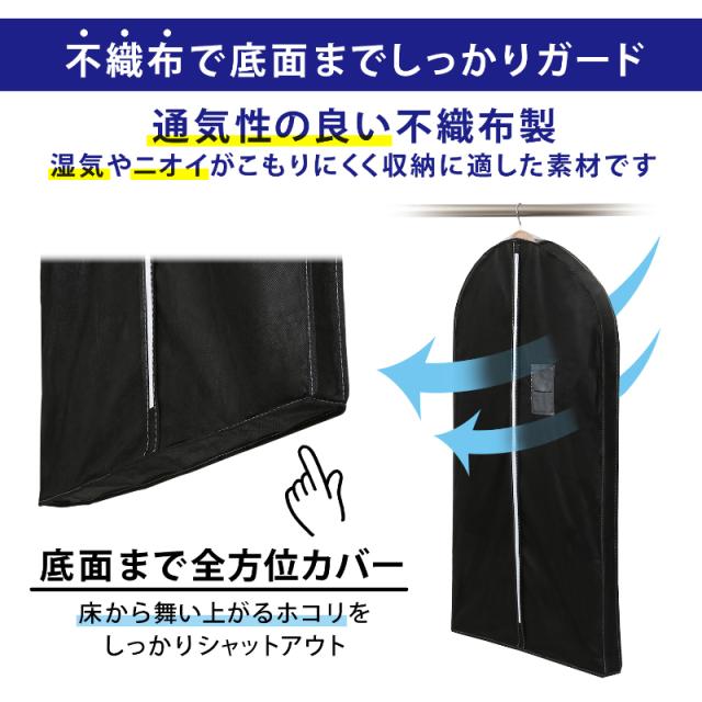 衣類カバー 5枚組 スーツ丈 マチ付き 厚手 不織布 吊り下げ 洋服カバー スーツカバー アストロ 110-45