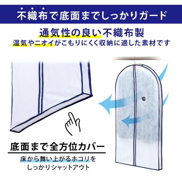 衣類カバー マチ付きで厚手衣類対応 スーツ丈 5枚組 吊り下げたまま使えるゆったりシワになりにくいマチ付き洋服カバー アストロ 110-48