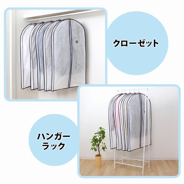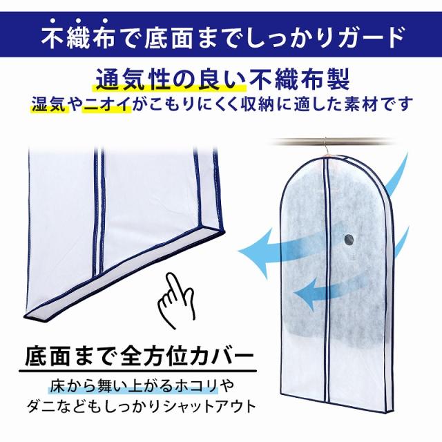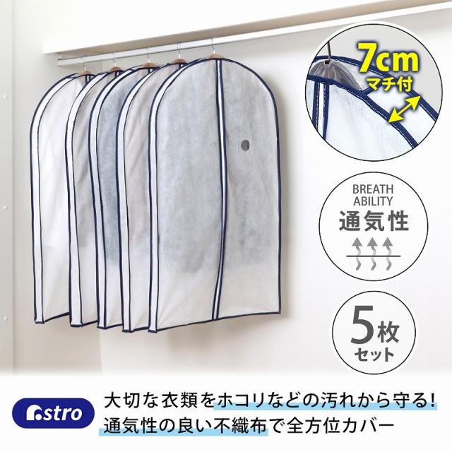 衣類カバー マチ付きで厚手衣類対応 スーツ丈 5枚組 吊り下げたまま使えるゆったりシワになりにくいマチ付き洋服カバー アストロ 110-48