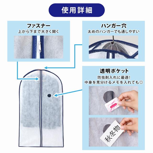 ●中身の見える透明窓、防虫剤用ポケット付き。防虫剤ポケットが透明なので、交換時期をすぐに確認できます。