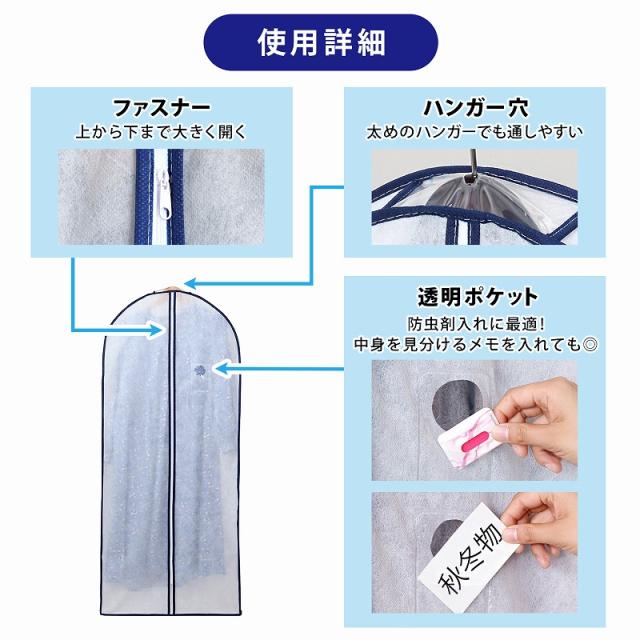 ●中身の見える透明窓、防虫剤用ポケット付き。防虫剤ポケットが透明なので、交換時期をすぐに確認できます。