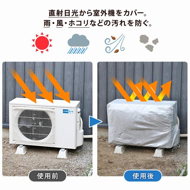 エアコン室外機カバー 室内機用 シルバー 撥水加工 スリット・ひも付き アストロ 113-09