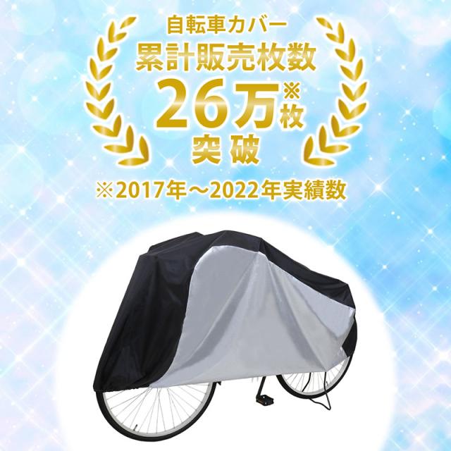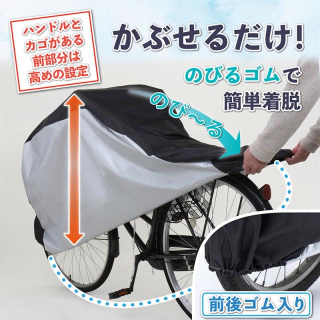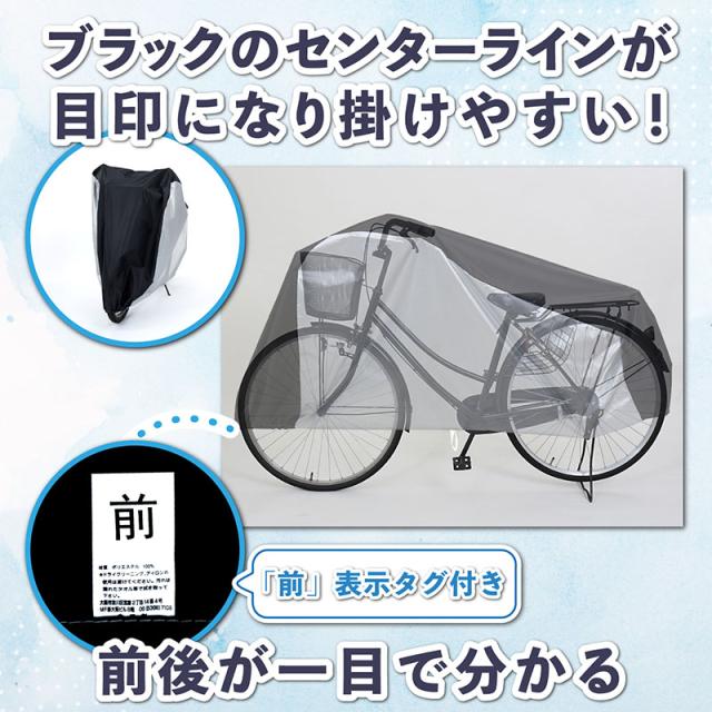スッキリカラーの自転車カバーで大切な自転車やバイクをしっかりガード◎ 撥水加工済み♪ カバー前後にはゴム入り、カバー下部にはヒモも付いているので風などで飛ばされるのを防ぎます カバー裏側の前方に「前」マーク付き 日本でデザインされた商品です シルバー(PU)コーティングでしっかり撥水、縫製がサイドにくるので天面に溜まった雨水が縫い目にかかりにくい構造です
