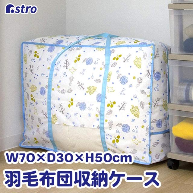 商品名:北欧の森 持ち手付き羽毛布団収納袋柄:北欧柄サイズ:約幅70×奥行30×高さ50cm材質:ポリプロピレン、ポリエチレン内容:1枚生産国:中国【収納目安】●羽毛布団(シングルもしくはダブル):約1枚【特長】●通気性の良い不織布で羽毛布団を湿気やホコリから守り大切に保管。●かわいい北欧テイストの収納袋が押入れやクローゼットを明るく彩ります。●ダブルファスナーで大きく開くので、お布団の出し入れラクラク。●中身が見える透明窓付きで、袋を開けずに収納物の確認ができて便利。【ご注意】●洗濯はできません。【不織布とは】不織布(ふしょくふ)とは、繊維を糸にして織ったり編んだりせずに、そのままシート状にした「織らない布」のことです。通気性が良くホコリを通しにくい生地のため、衣類や寝具の収納に適しています。アストロではスパンボンド方式で製造されたポリプロピレン製の不織布を主に使用しています。ASTRO CO., LTD established in 1970