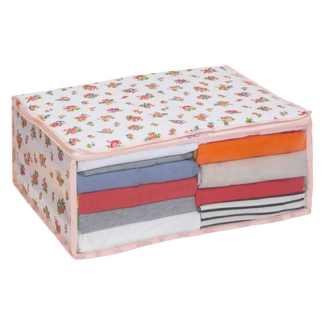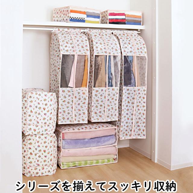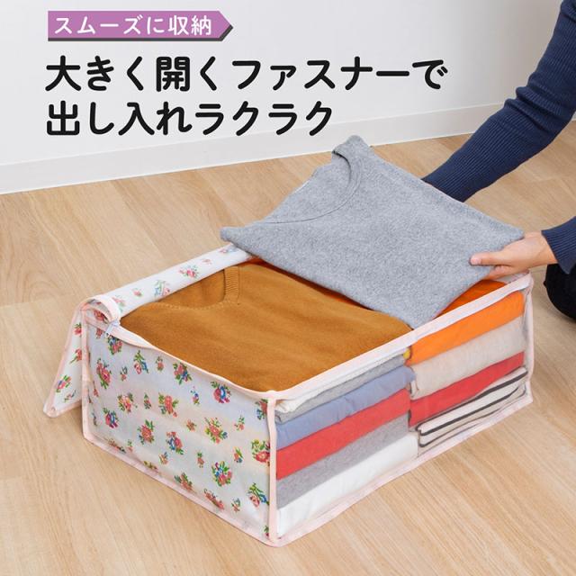 可愛い花柄収納シリーズで楽しく収納♪ 通気性のある不織布製で湿気やホコリから大切な寝具を守ります 上部ファスナー式で大きく開き出し入れカンタン! 毛布以外にも薄手の布団などの収納にも最適です◎