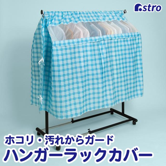 ハンガーラックカバー 洗える ポリエステル製 チェック柄 横まですっぽり 固定紐付 衣類カバー 洋服 収納 アストロ 193-04