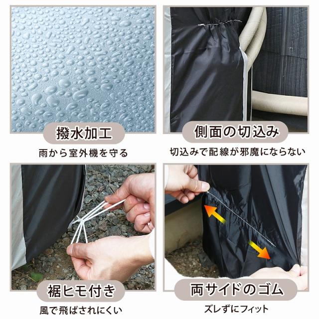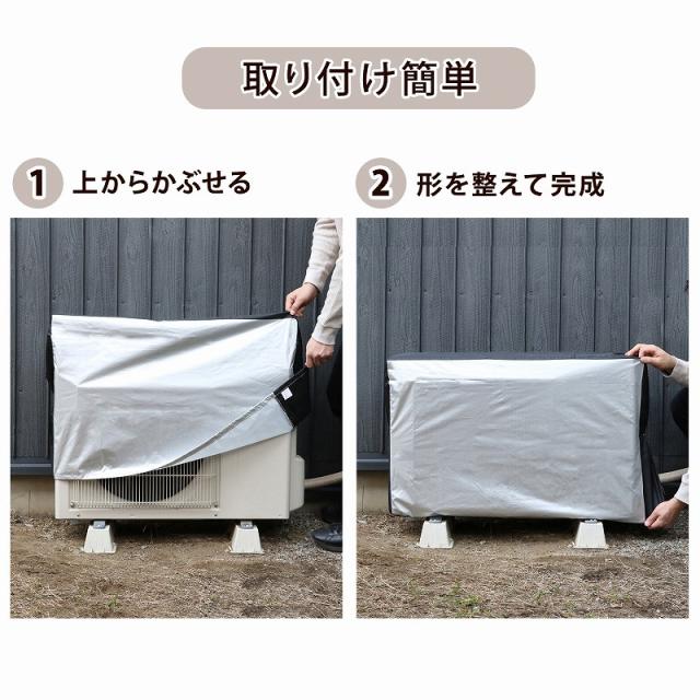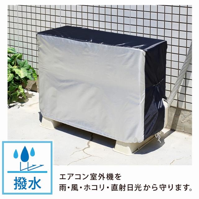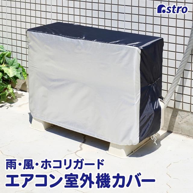 アストロ エアコン室外機カバー シルバー×ブラック 撥水加工 配管用スリット 風飛び防止ヒモ付き 194-05