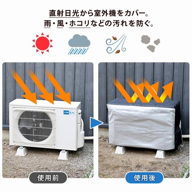 商品名:エアコン室外機カバー センターブラックカラー:シルバー×ブラックサイズ:約幅82×奥行31×高さ55cm材質:ポリエステル100%(アクリルコーティング)内容: 1枚生産国:中国【適応サイズ】●約幅81×奥行30×高さ54cmまで●オフシーズンや、長期間使用しない際のエアコンの室外機を守ります。●撥水加工を施しており、雨、風、ホコリ、汚れ、直射日光などからガード。お掃除の手間も省けます。●両サイドゴム入り、側面の切り込みで配管や配線を避けてかぶせられます。●センターの黒いラインが目印になりカンタンに装着。裾ヒモ付きでズレずにフィット。風で飛ばされにくい。【ご注意】●カバーを付けたままエアコンを作動させないでください。【ASTRO CO., LTD】1970年創業、不織布収納日用品メーカーとして「アストロ」のオリジナル商品を販売しています。生地の開発から製造、流通、品質管理を自社管理。収納用品をメインに多彩な日用品を企画販売してまいりました。アストロは暮らしを楽しく便利にさせる商品をこれからも創造し続けます。established in 1970