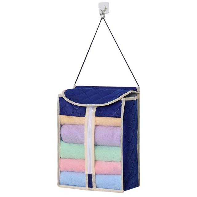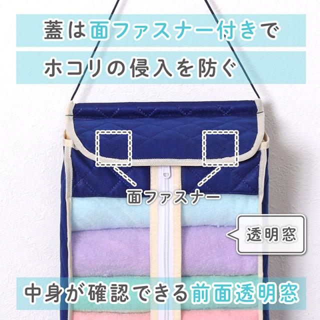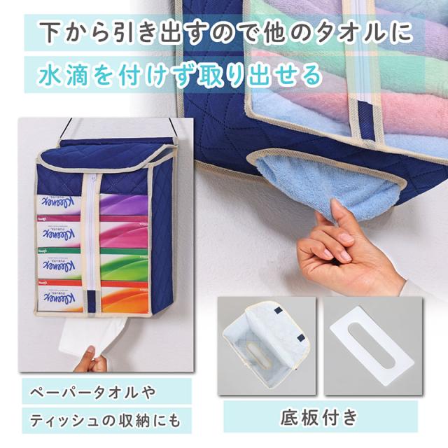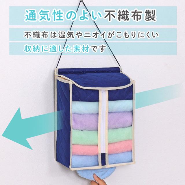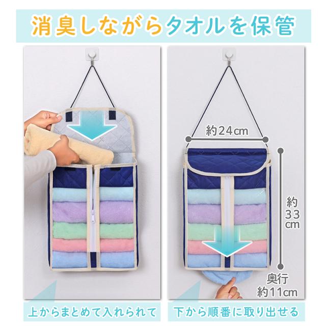 タオル収納 ストッカー 壁掛け 消臭素材入り 不織布製 ネイビー 前面ファスナー 下から取り出せる アストロ 155-11
