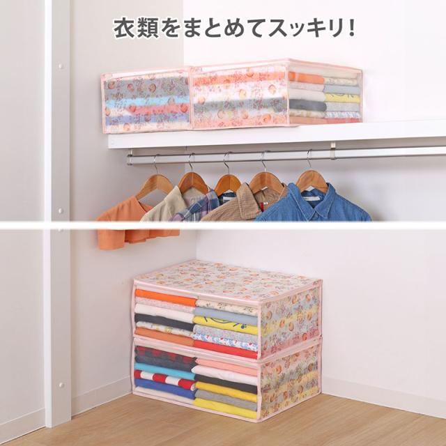 衣類収納ケース チューリップ柄 4個組 通気性の良い不織布製 収納袋 衣装ケース 洋服 収納ボックス 防塵 透明窓付き 折りたたみ レトロ 花柄 アストロ 168-01