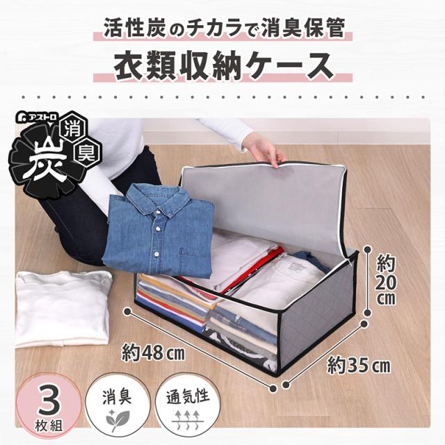 衣類収納袋 3枚組 活性炭消臭 不織布 収納ケース 洋服 衣装ケース 衣替え 保管 アストロ 171-01