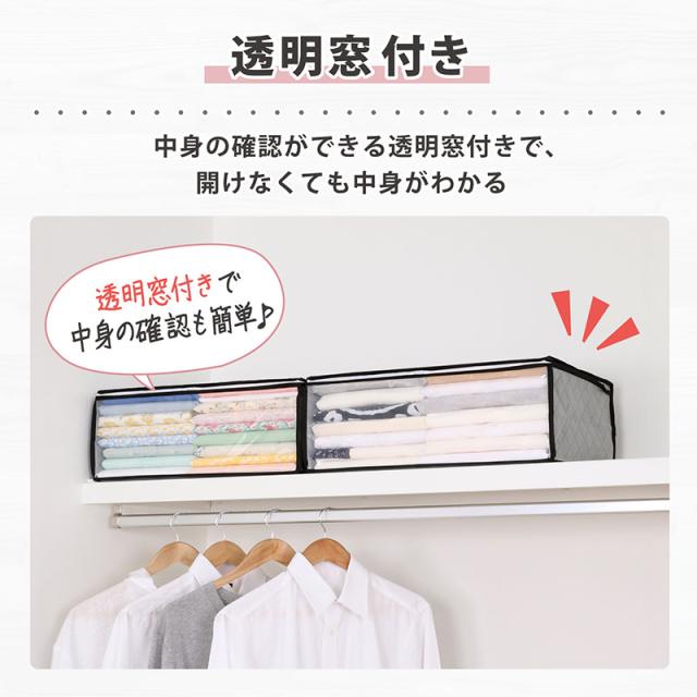 ●中身の見える透明窓から収納物が確認できる。前面に透明窓がついているので積み重ねても中身が一目でわかります。