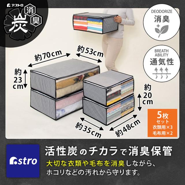 活性炭消臭 衣類収納袋&毛布収納袋 5枚組(衣類×3・毛布×2) 不織布 洋服 衣装ケース 布団 軽寝具 収納ケース 収納ボックス アストロ 171-27