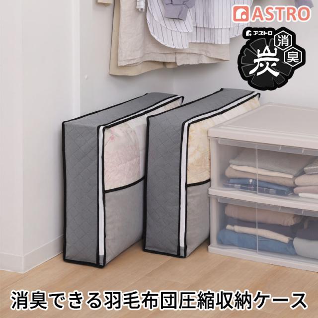 羽毛布団収納ケース 活性炭消臭 シングル 不織布製 収納袋 スリム収納 コンパクト 軽圧縮 圧縮袋 通気性 ふとん収納 アストロ 171-41