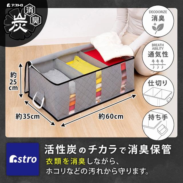 仕切り付き収納ケース 衣類収納 活性炭消臭 不織布製 持ち手付き 収納袋 収納ボックス 通気性 ほこり除け アストロ 171-46