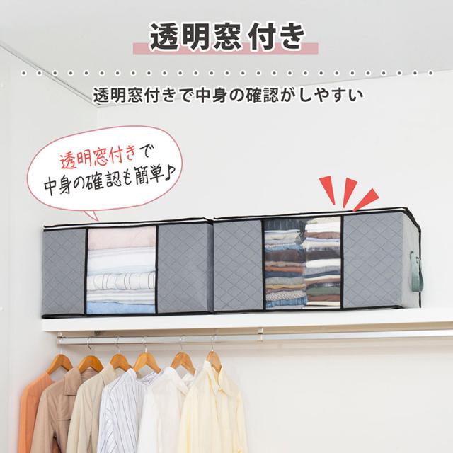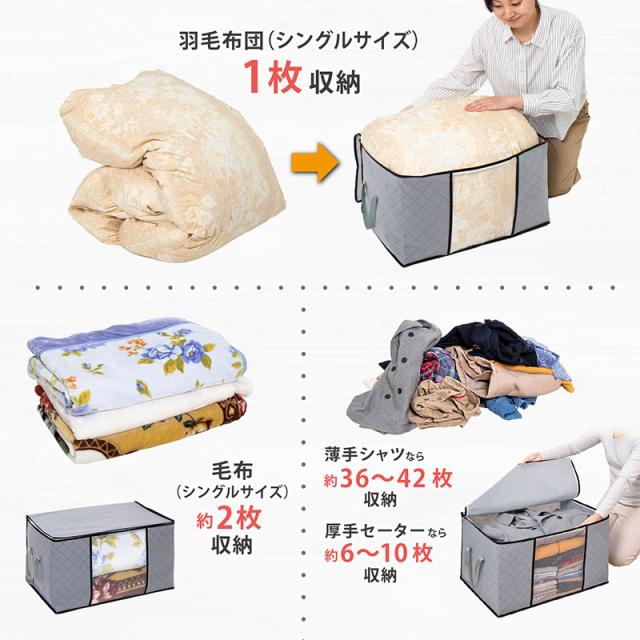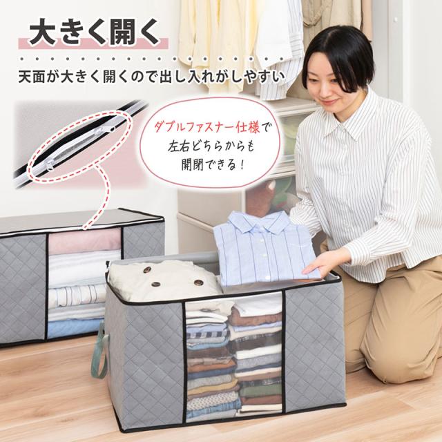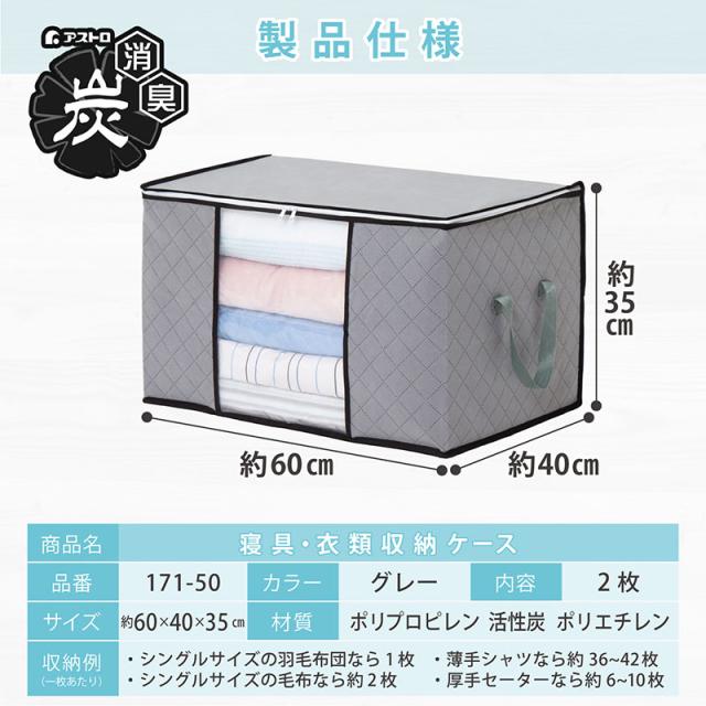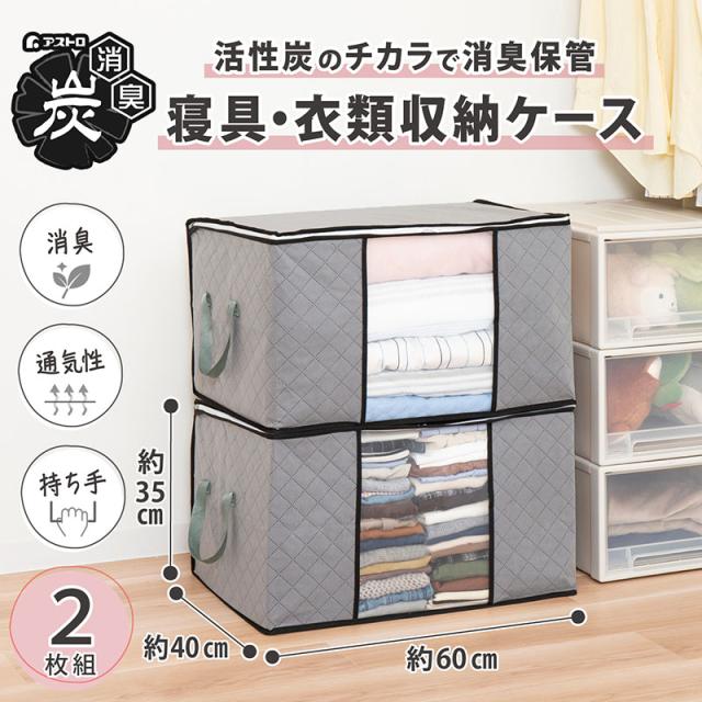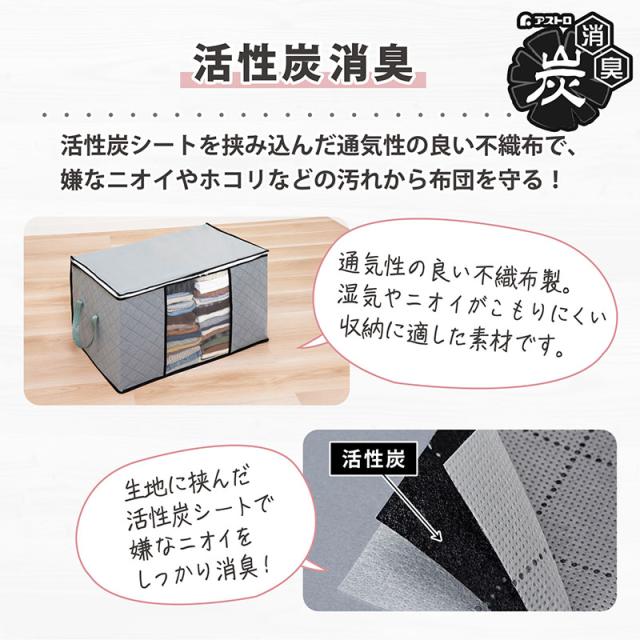 活性炭消臭 羽毛布団 衣類 収納ケース 2個組 活性炭のチカラで消臭保管 持ち手付き 通気性の良い不織布 透明窓付き 布団収納袋 衣装ケース 大容量 奥行40cm 蓋付き 服 毛布 寝具 保管 グレー アストロ 171-50