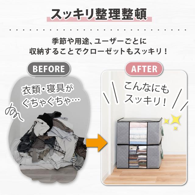 ●厚手のセーターが約6~10枚入る大容量サイズ。オフシーズンの衣類や小物を大切に保管します。
