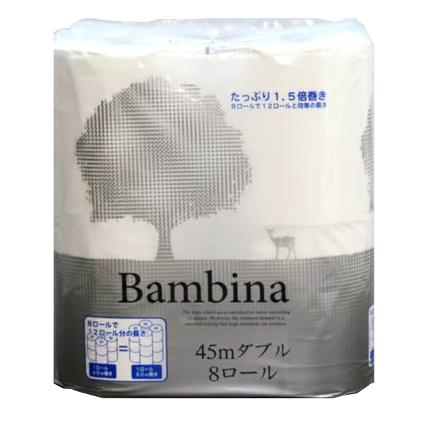 トイレットペーパー 林製紙 1.5倍巻き ダブルバンビーナ ダブル45m 8ロールX12パック
