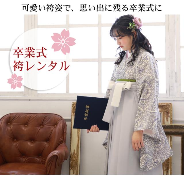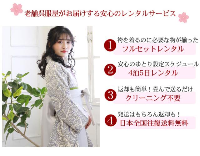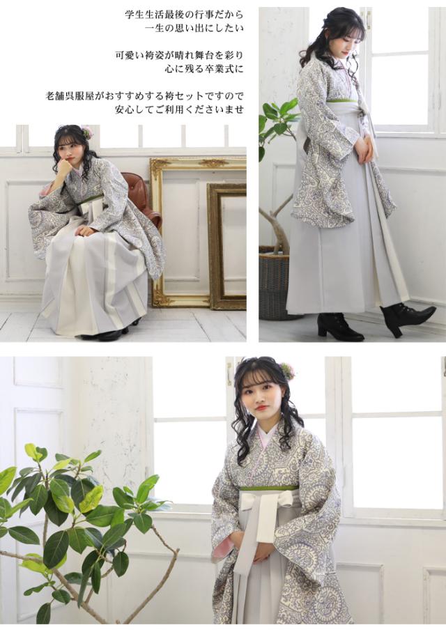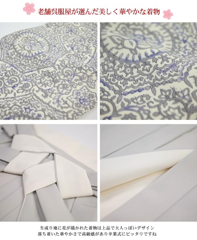 【レンタル】 卒業式 袴 レンタル 女 袴セット 女性 卒業式袴セット 2尺袖着物&袴 フルセットレンタル 大学生 モダン 「生成り地に花柄」 二尺袖 上品 大人